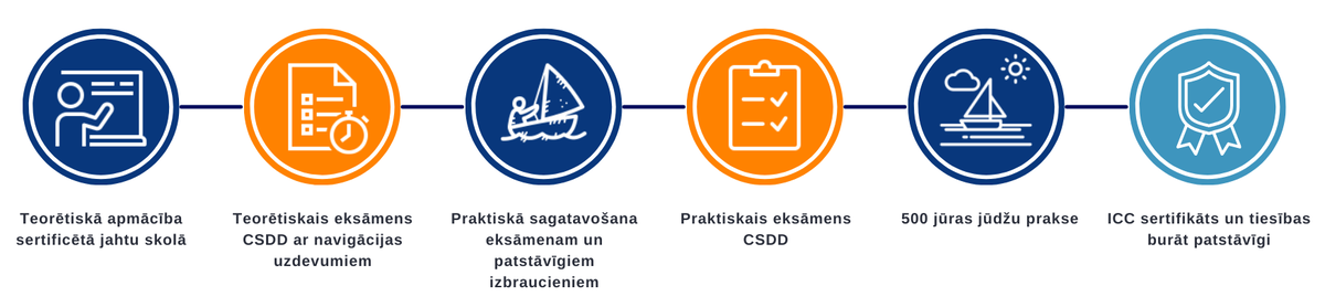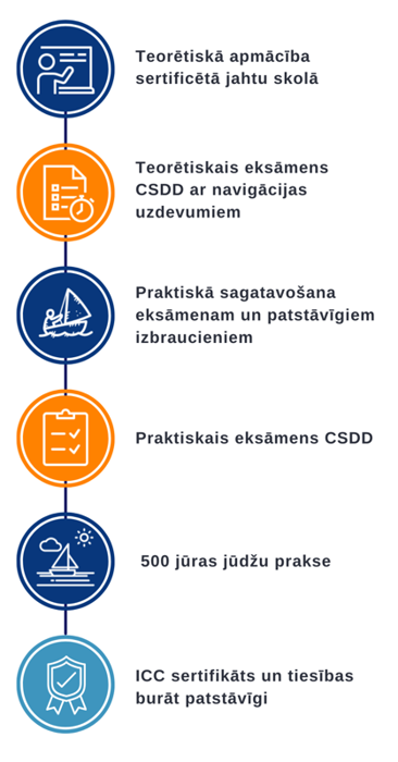 SIA Sunlights Sailing ir CSDD un Latvijas Zēģelētāju savienības sertificēta mācību iestāde starptautisko atpūtas kuģu vadītāja apliecības (ICC) iegūšanai kategorijās